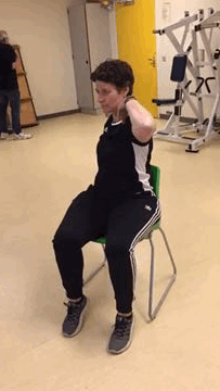 Draaien met handen op schouders Draai totaal 5x naar links en 5x naar rechts. Neem even rust en herhaal dit nog 2x |