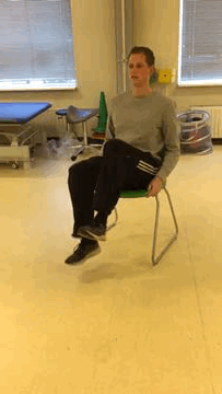 Buigen/ strekken Herhaal dit totaal 10x. Neem even rust en herhaal dit nog 2x | Fietsen met de benen Maak met beide benen 10x een fietsbeweging. Neem even rust en herhaal dit nog 2x | Zijwaarts bewegen Beweeg totaal 5x naar links en 5x naar rechts. Neem even rust en herhaal dit nog 2x |