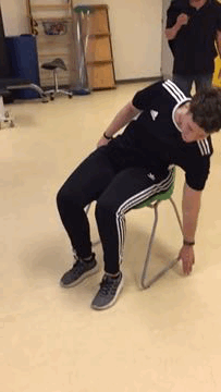 Draaien met handen op schouders Draai totaal 5x naar links en 5x naar rechts. Neem even rust en herhaal dit nog 2x |